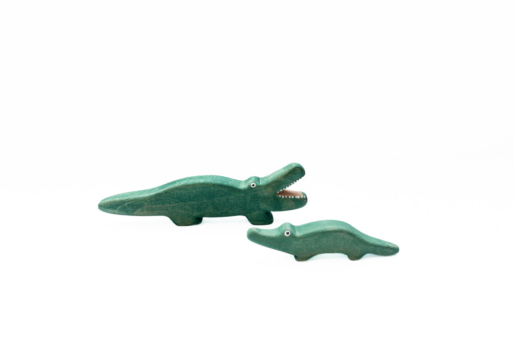 Die Krokodile sind aus hochwertigem Buchenholz gefertigt, mit natürlichen, wasserbasierten Farben bemalt und mit natürlichen Ölen veredelt.