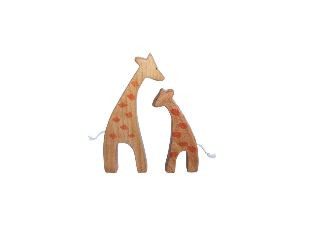 Die Giraffen sind aus hochwertigem Buchenholz gefertigt, mit natürlichen, wasserbasierten Farben bemalt und mit natürlichen Ölen veredelt.