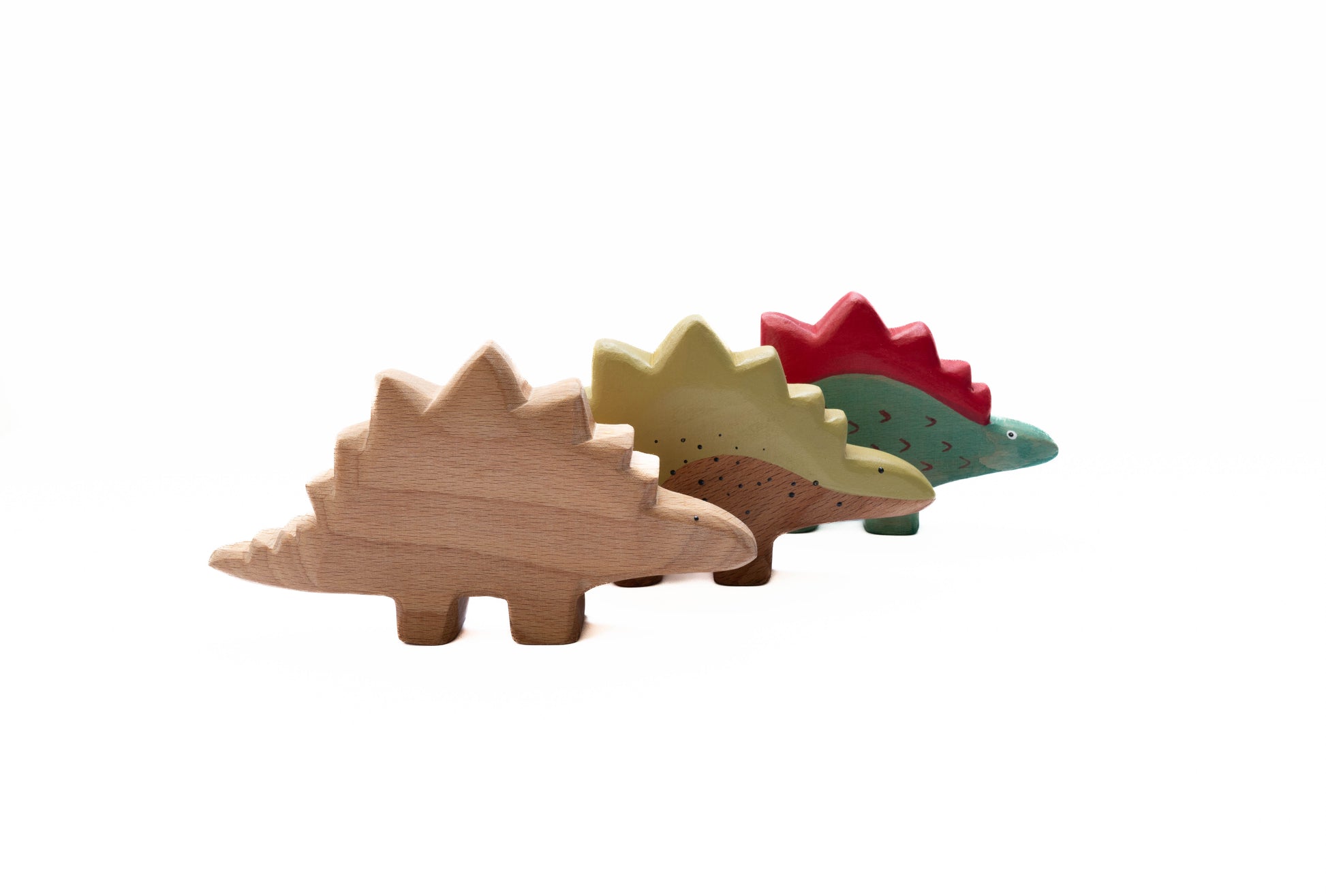 Das Stegosaurier-Set ist aus hochwertigem Buchenholz gefertigt, mit natürlichen, wasserbasierten Farben bemalt und mit natürlichen Ölen veredelt.